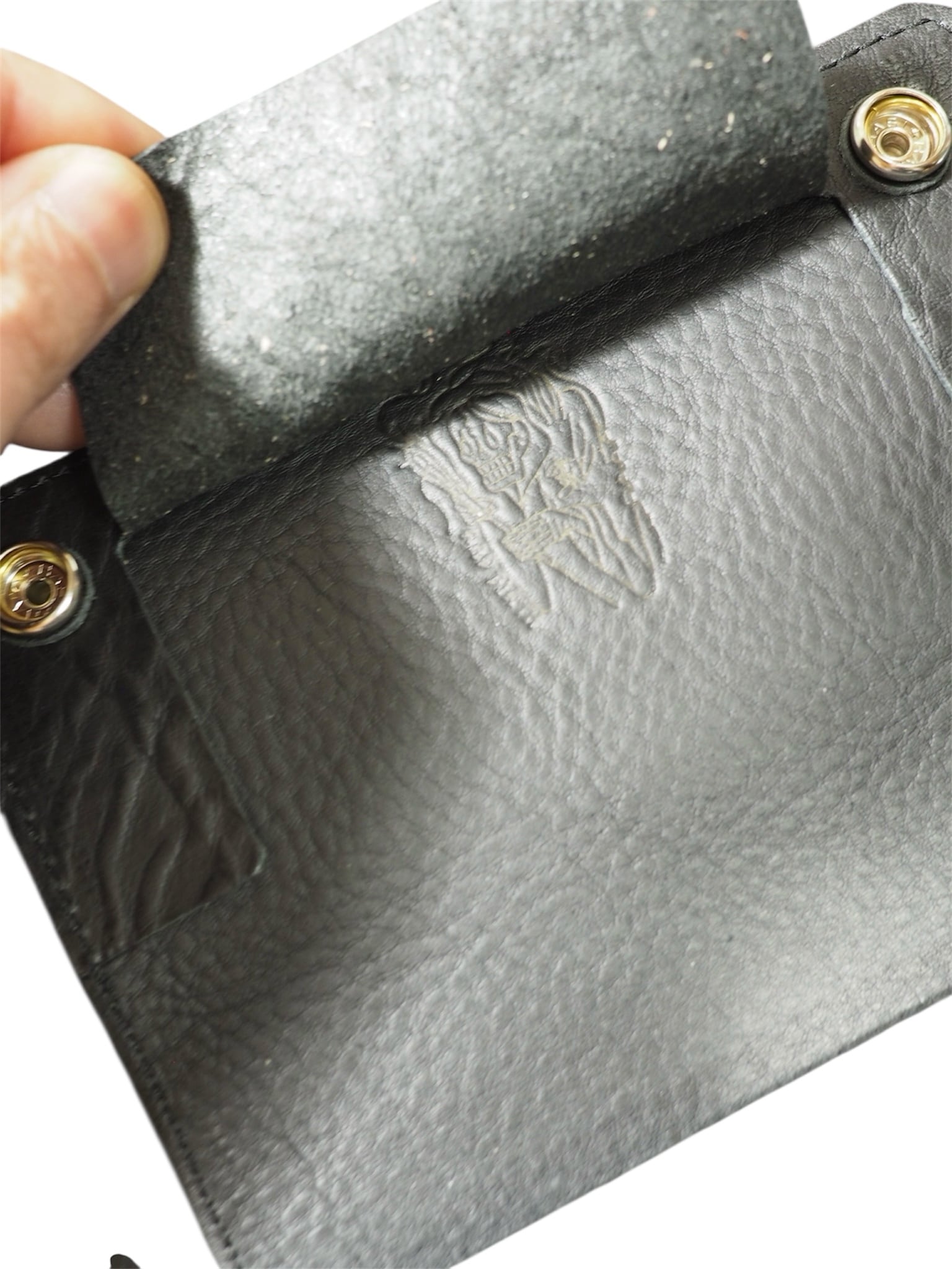 ハトメが付いているのでウォレットチェーンなども付けれます。
