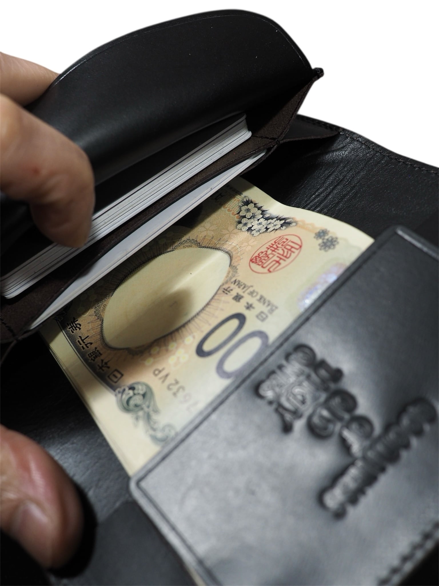 お札、小銭、カードと十分な収納を兼ね備えながらもコンパクトで薄い仕上がりになっています。
