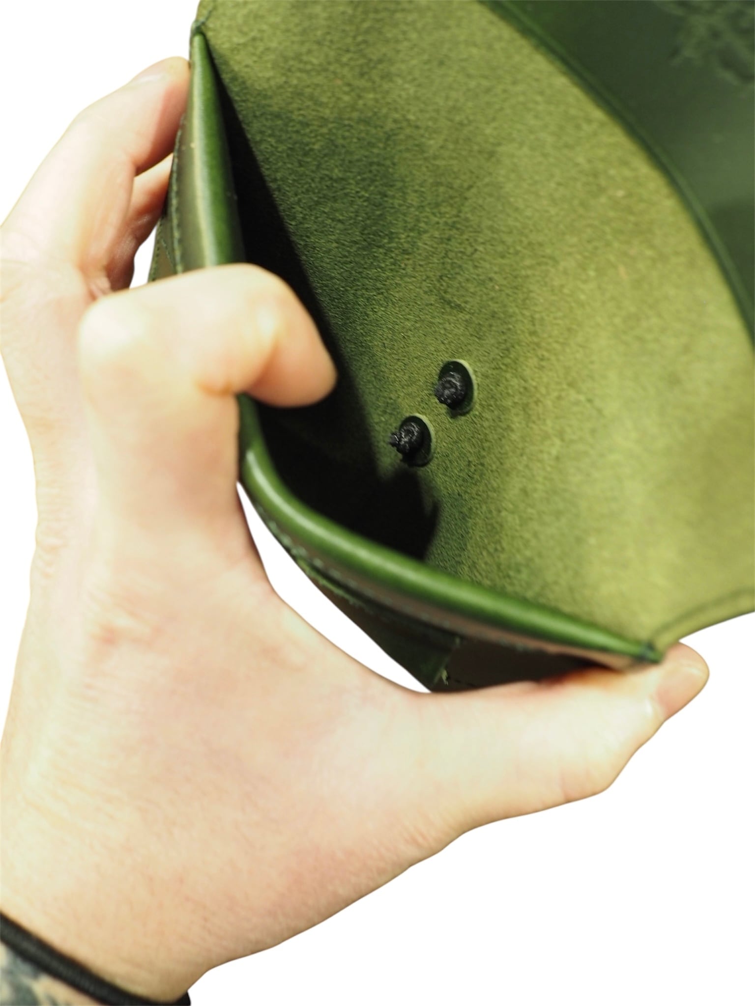 仕上げにオイルとパラフィンを手作業で塗り込み味わい深い革になっています。