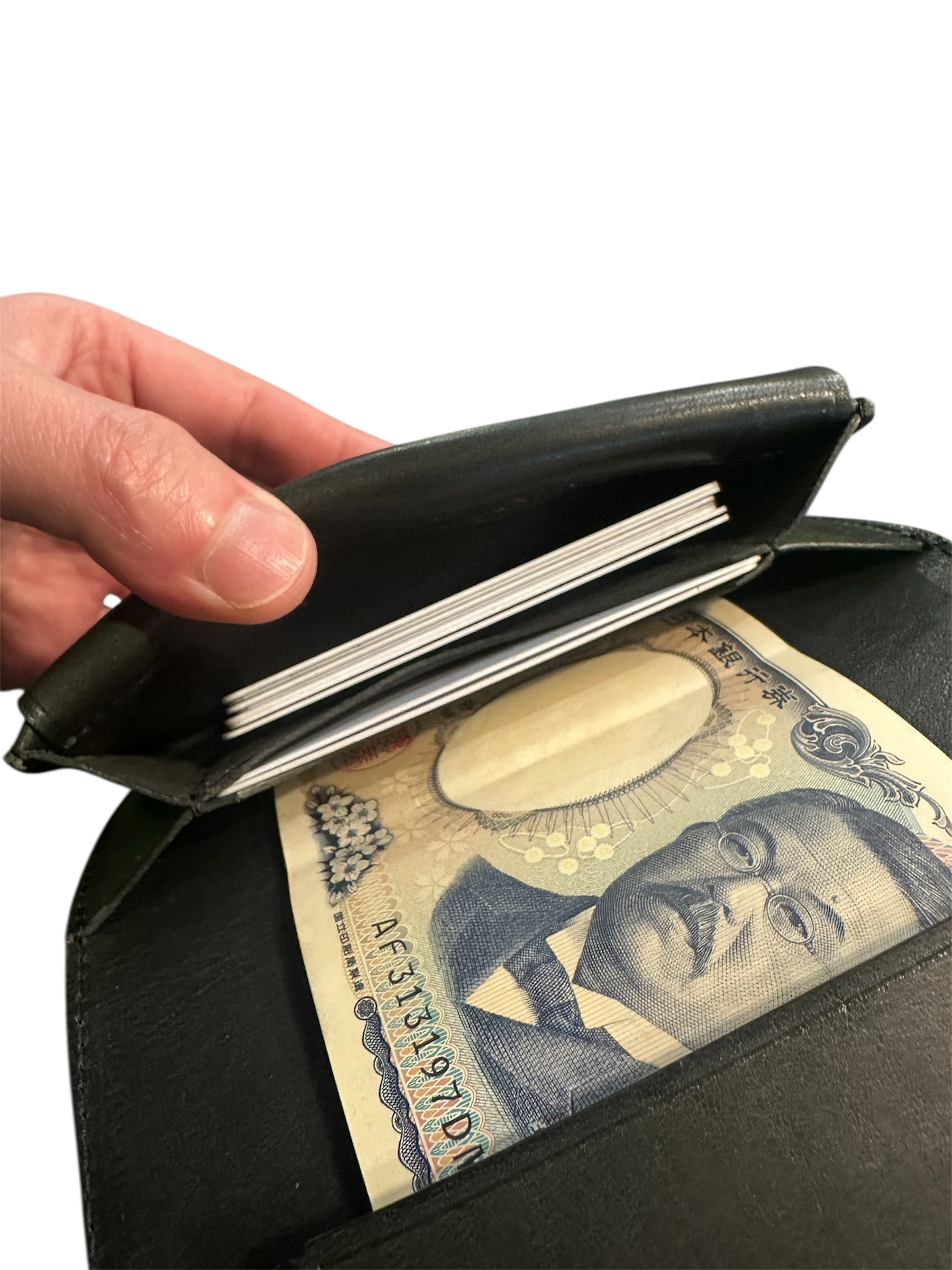 お札、小銭、カードと十分な収納を兼ね備えながらもコンパクトで薄い仕上がりになっています。